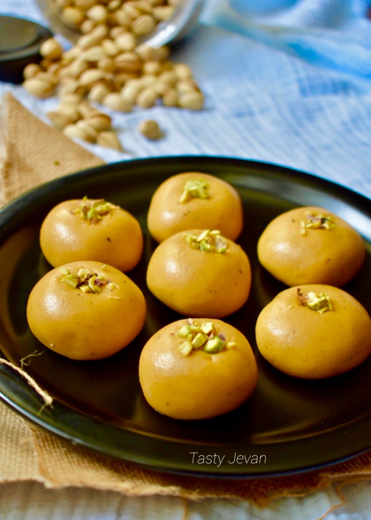 - Take a lemon size portion and roll in your palms to make rounds, apply little pressure to make Ladoo (rounds) smooth and shiny