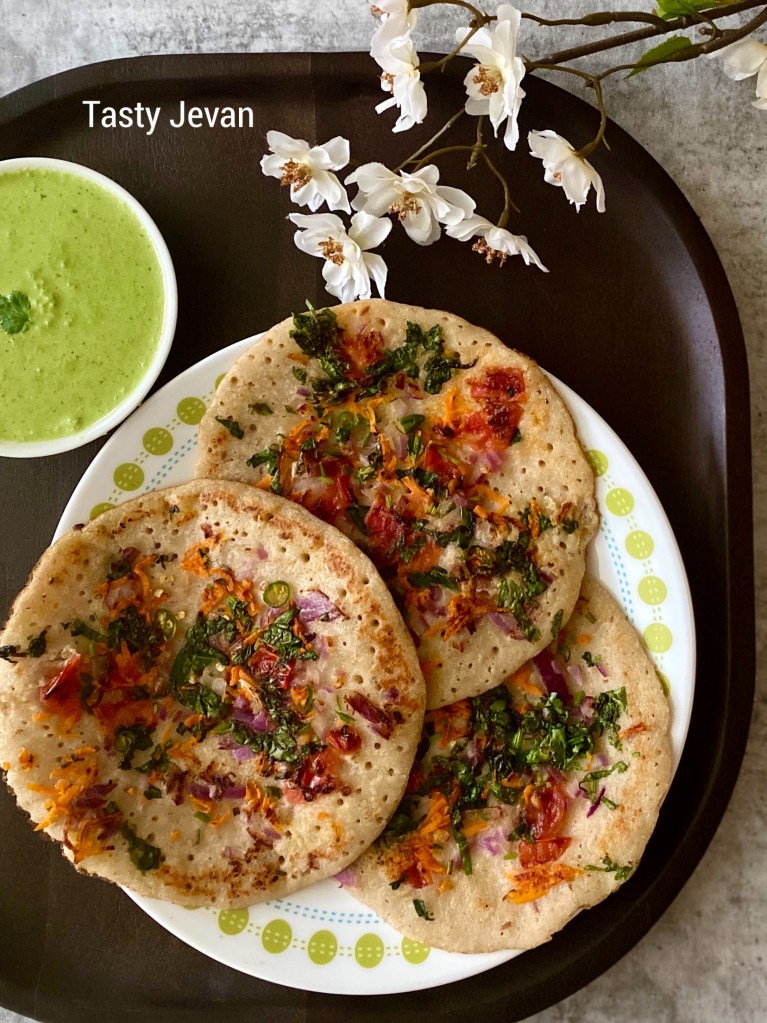 - Oil on the sides helps add little crunchiness to the uttapam
