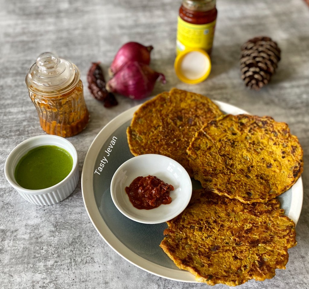 - Cook for 1 min, turn Thalipeeth and cook other side