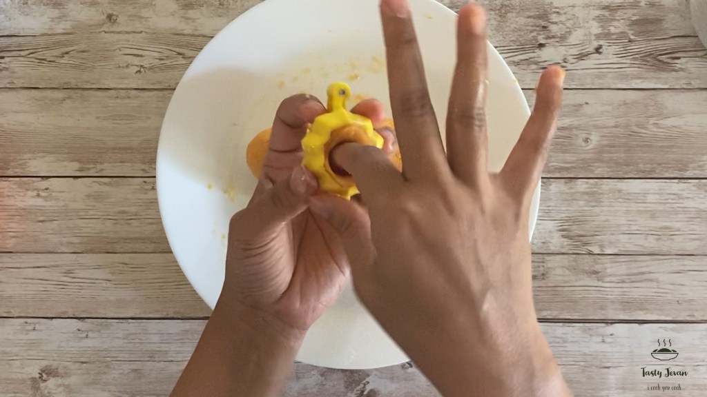 - Cut oranges and peel them, collect the orange pulp in a bowl