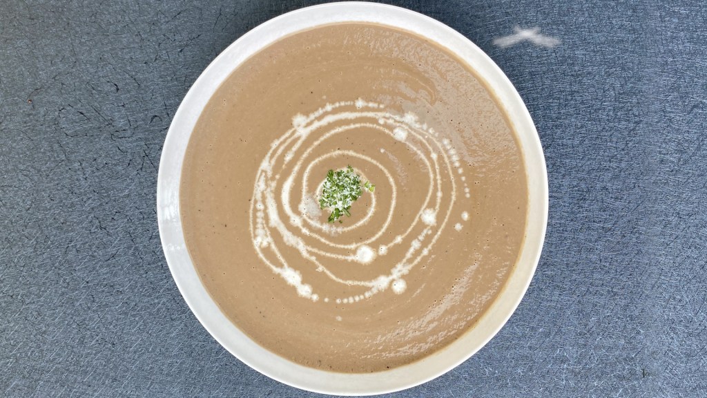 - If desired keep some cooked mushroom pieces aside, you can add them later to the soup