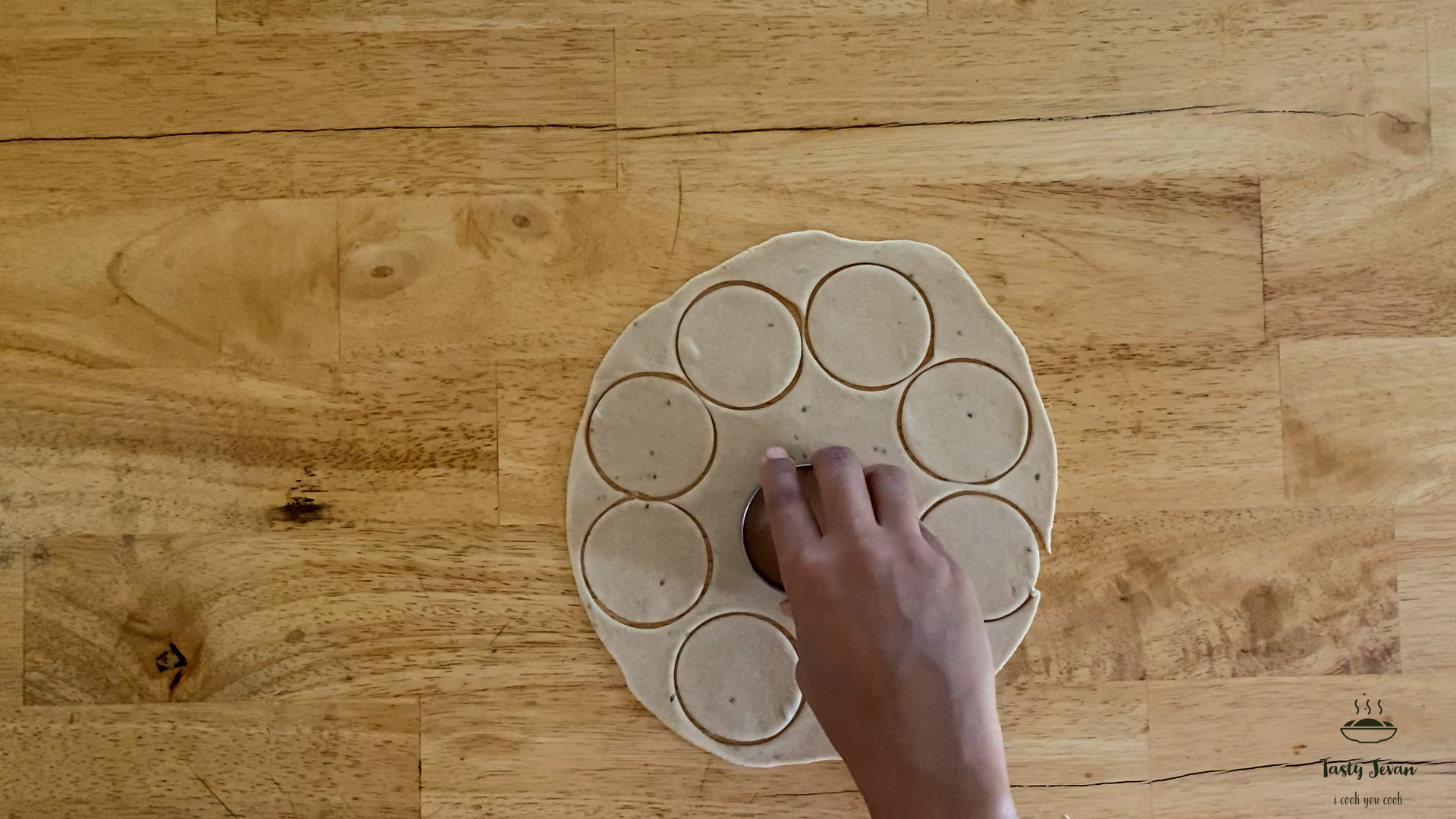 - Take a round cutter and cut rolled chapati in small rounds