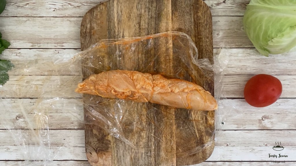 - Wash chicken breast thoroughly with water and put it on kitchen towel to soak extra water