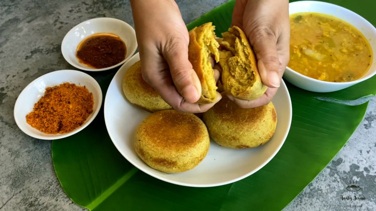 - Add 2 tbsp of hot Oil to the mixture, rub mixture and oil together for 3-4 min, this is important step for batti crispness/ khasta