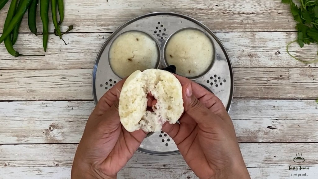 - Keeping batter aside is important so that sooji will soak moisture, and gets soft idli