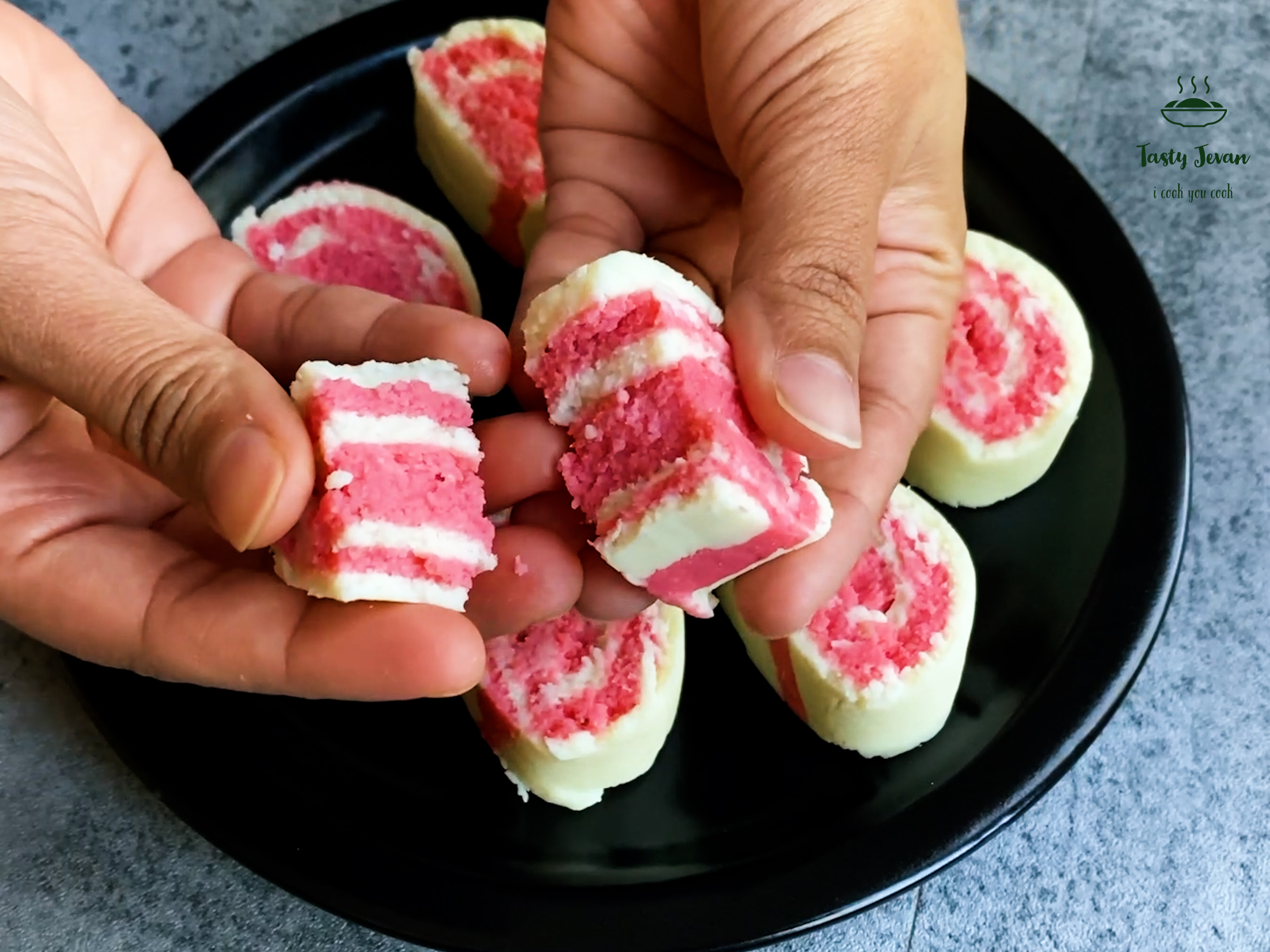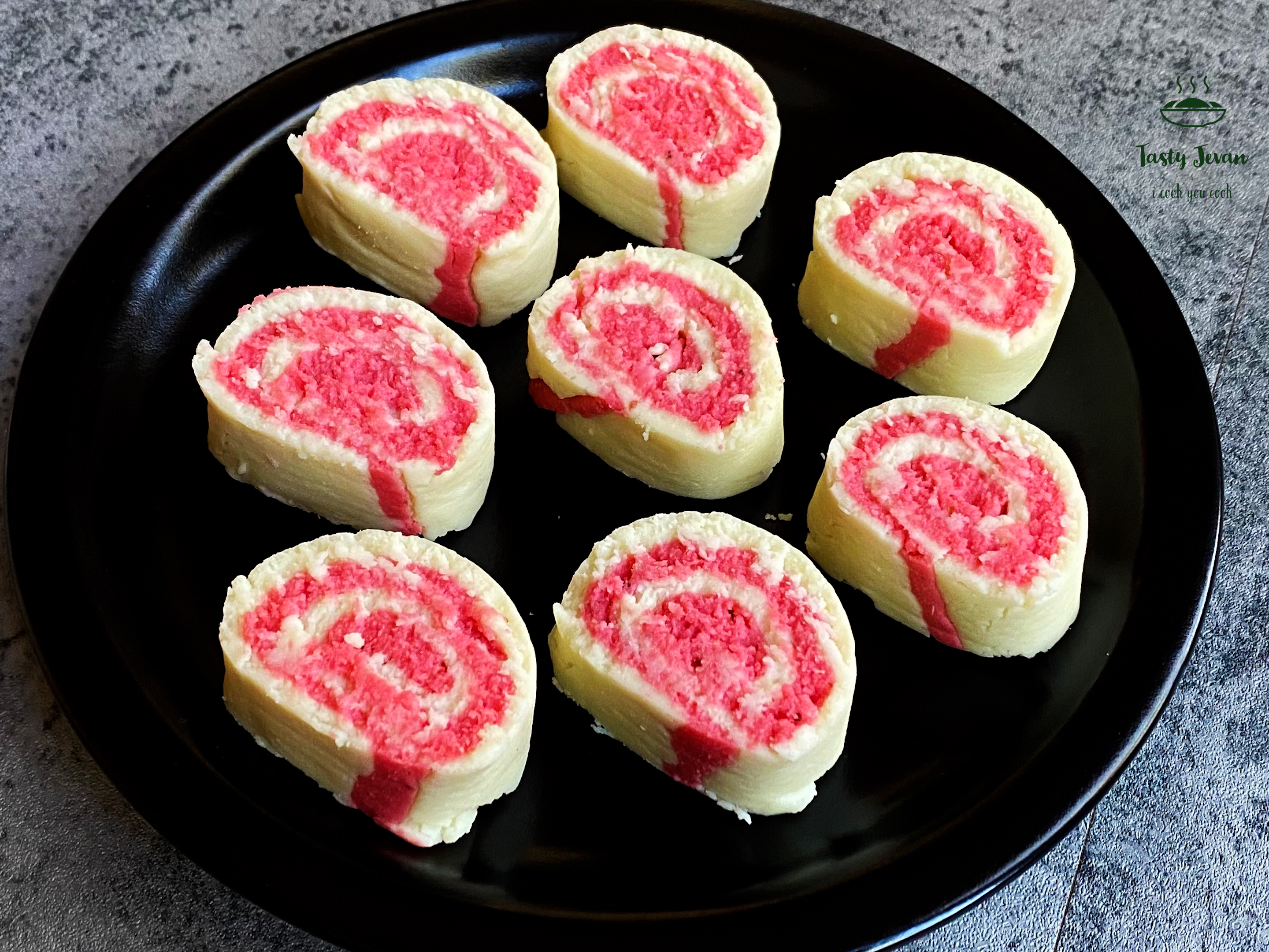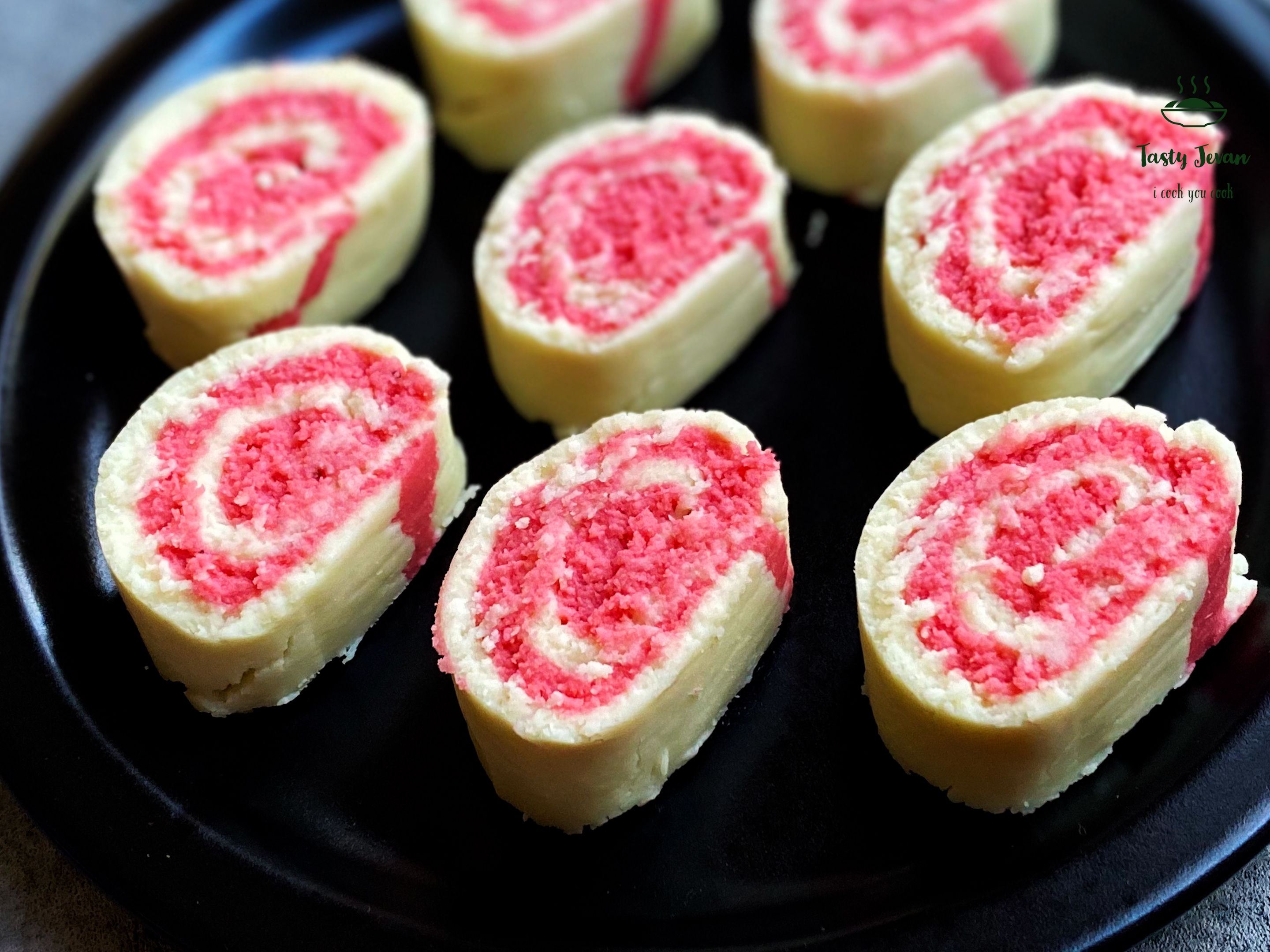 - Take half of chenna in a pan, add 2 tbsp strawberry jam, cook till it is mixed well. Let it cool down