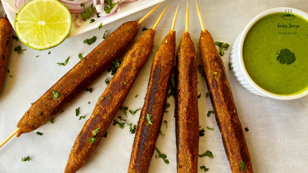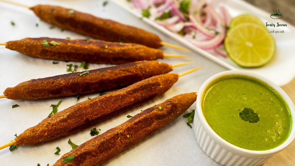 - Now take a handful of portion, make a cylinder shape around a stick(seekh)