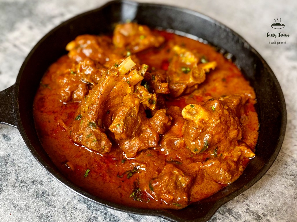 - Spicy flavorful mutton curry is ready!