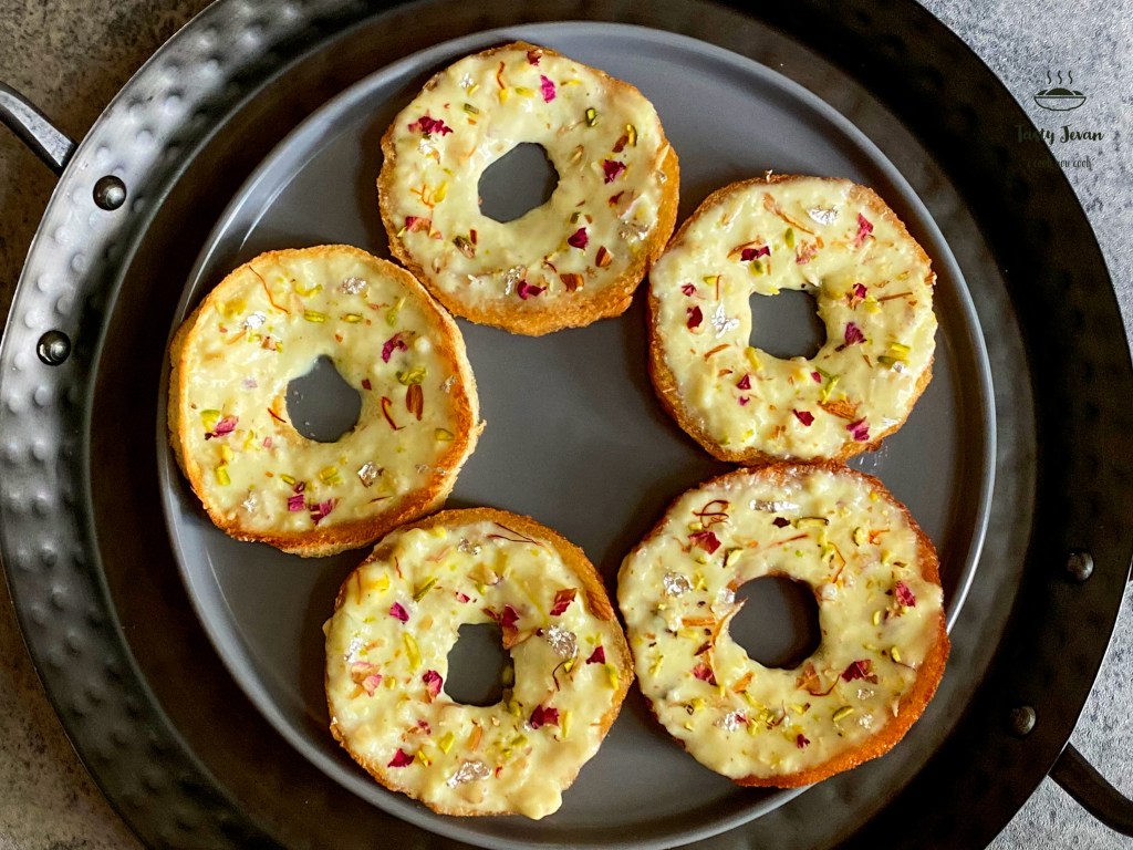 - Place fried / baked bread slice in plate,