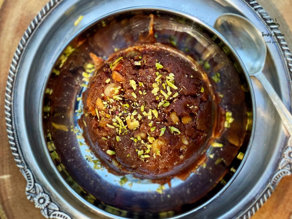 - Heat 1 tsp ghee in a pan, add chopped almonds, cashews, walnuts, roast till crunchy, set aside