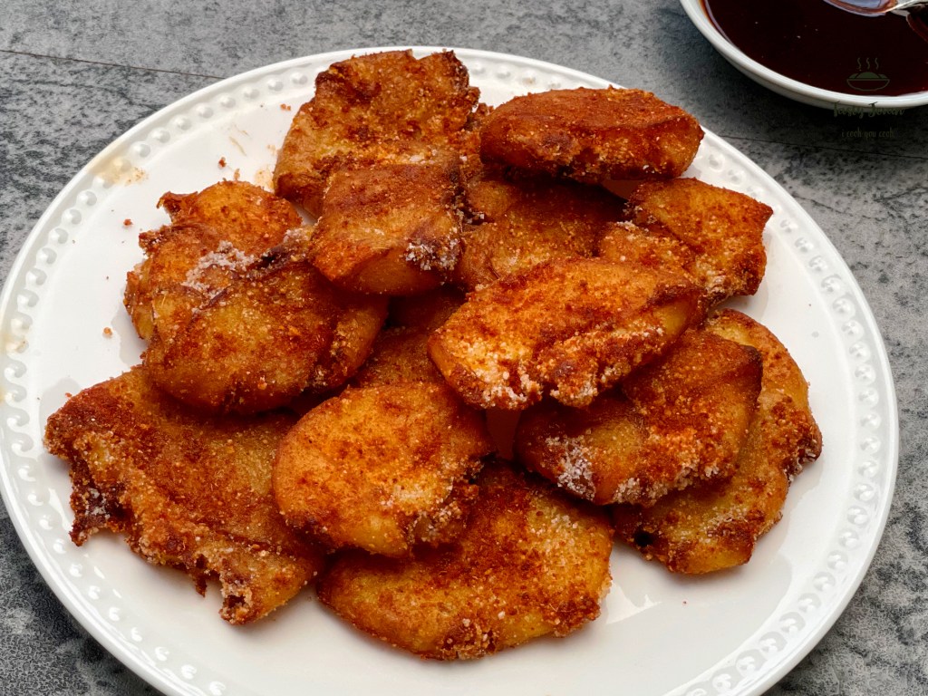 - Fry coated potatoes again till crispy, repeat for all potato pieces