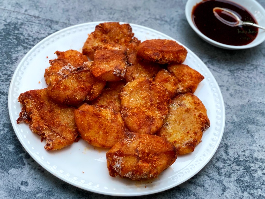 - Now sprinkle masala over fried potatoe, toss to coat well