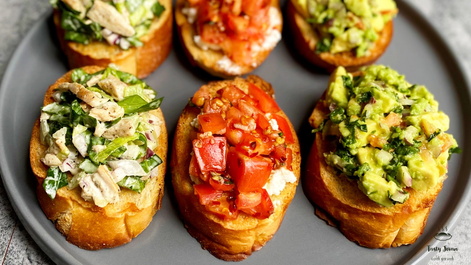 Bruschetta Recipe | Bruschetta with variety toppings | Bruschetta toppings recipe | Quick Party snack recipe