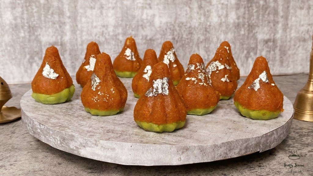 These Modals are made inspired with classic combination of Kesar and Pista. Coconut based Modak, flavored with kesar and pista half and half taste great, you would surely want to eat more.