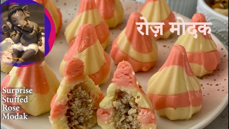 Rose is one of the popular flavor in sweets, this fusion recipe brings rose flavors in Modak. These modaks are unique in design and taste. It has surprise filling to complement the flavors of Modak.