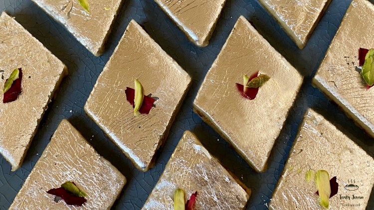 Festivities are incomplete without a sweet, and this fusion recipe is very tasty and just perfect to share your happiness with others. Almonds / Badam are reach in taste and considered healty nuts. This katli is made with gulkand sandwiched between creamy badam layers, it gives this katli/barfi a amazing flavor and nice creamy texture from almonds. This recipe is sure to impress your guests and family members. Do try and share your feedback.